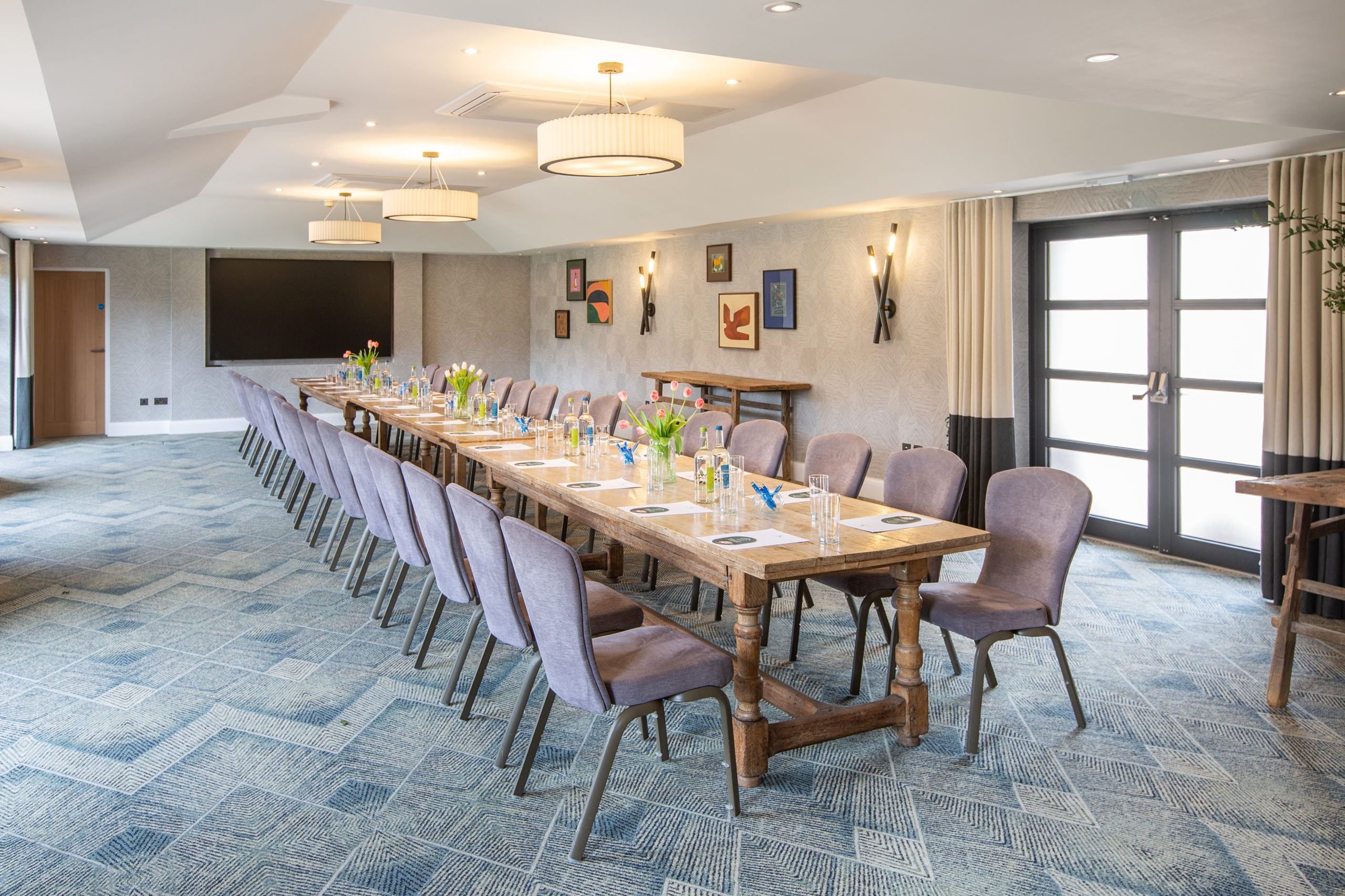 Flooded with natural daylight, this beautifully designed function room offers a bright and airy setting, perfect for a wide range of occasions. With direct access onto a private, south-facing patio, the space seamlessly blends indoor comfort with outdoor charm.