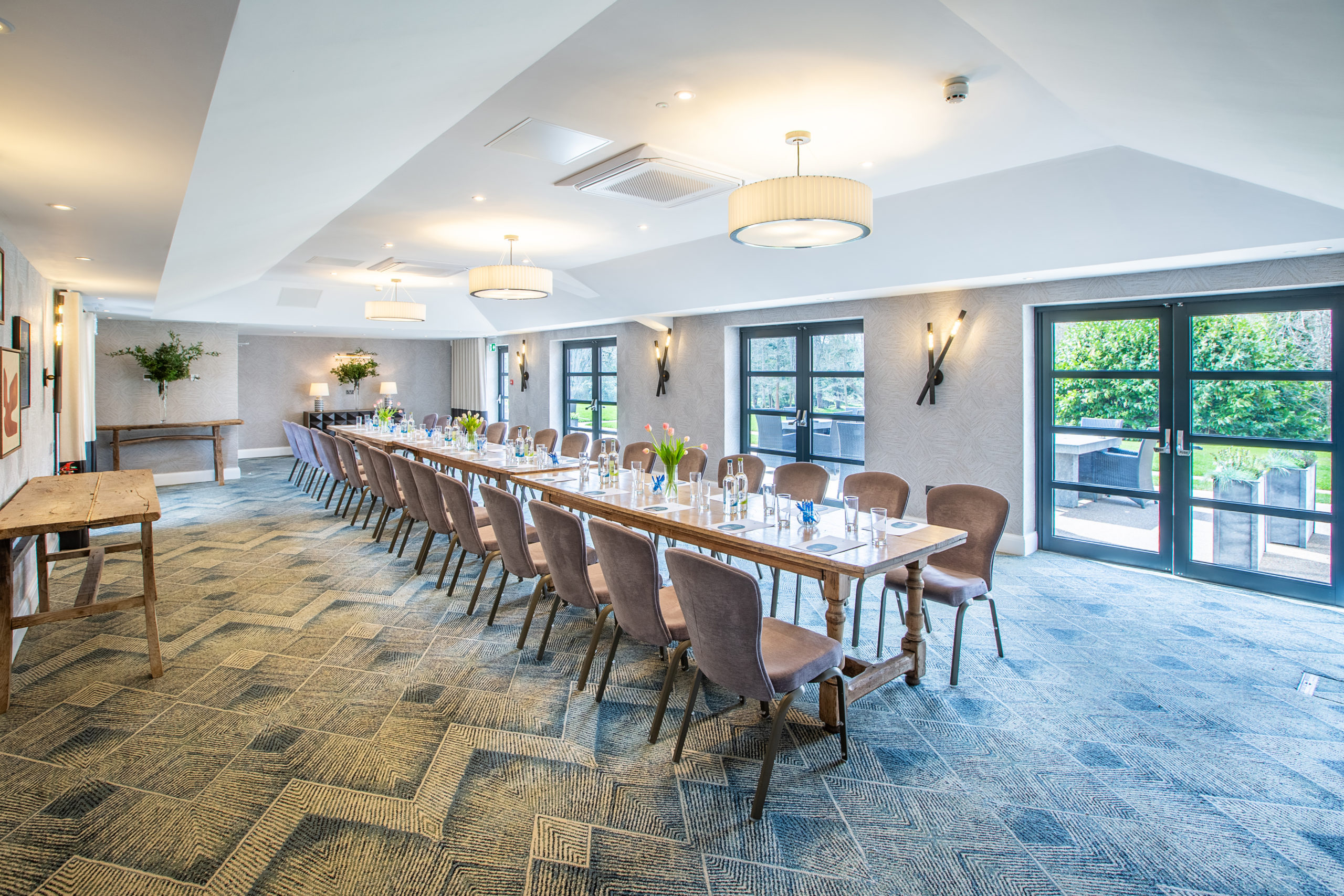 Flooded with natural daylight, this beautifully designed function room offers a bright and airy setting, perfect for a wide range of occasions. With direct access onto a private, south-facing patio, the space seamlessly blends indoor comfort with outdoor charm.