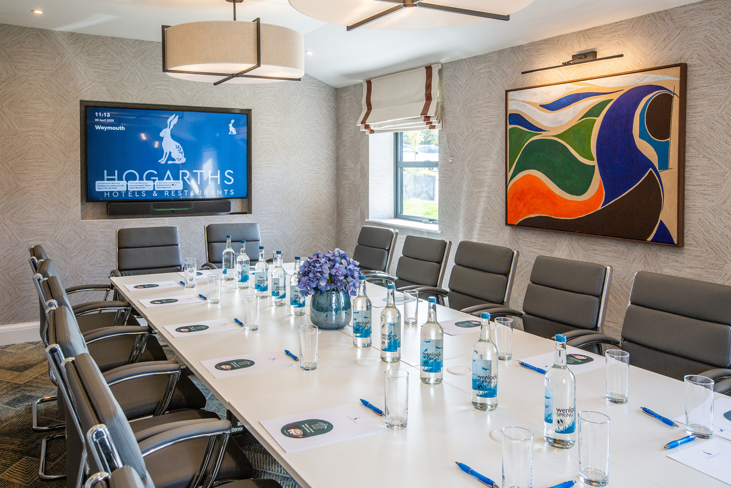 Designed to inspire focus, collaboration, and comfort. The Weymouth seats up to 16 delegates in a boardroom-style layout, offering an ideal space for executive meetings, presentations, strategy sessions, and client briefings.
