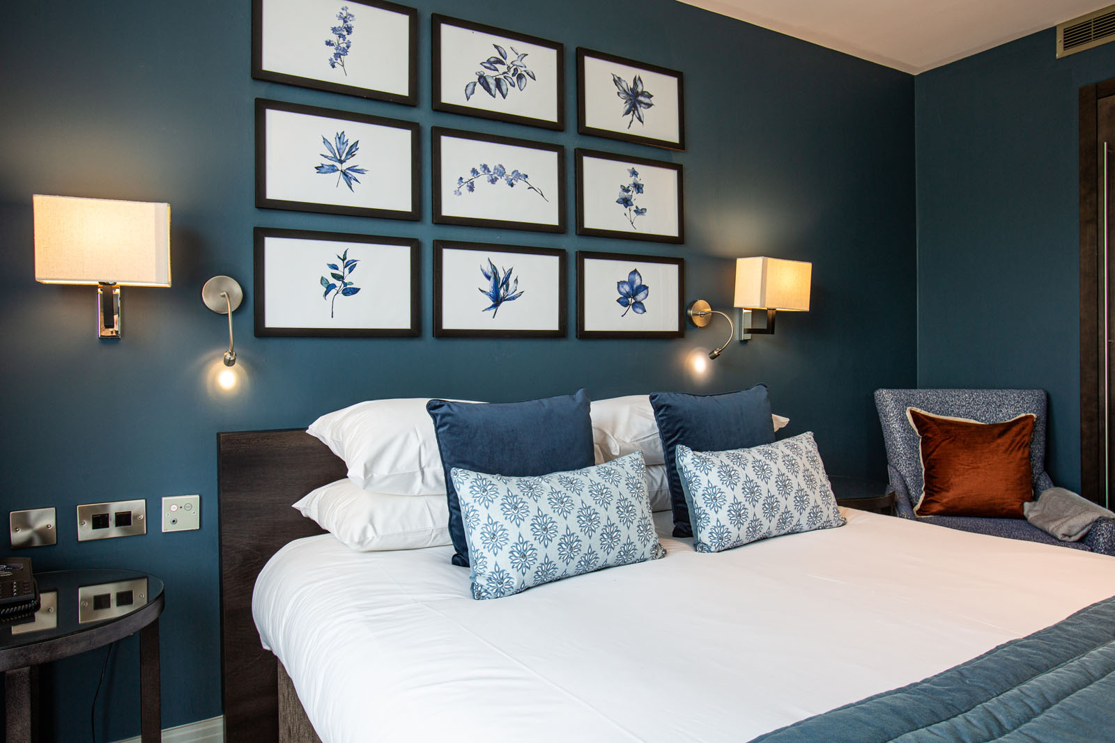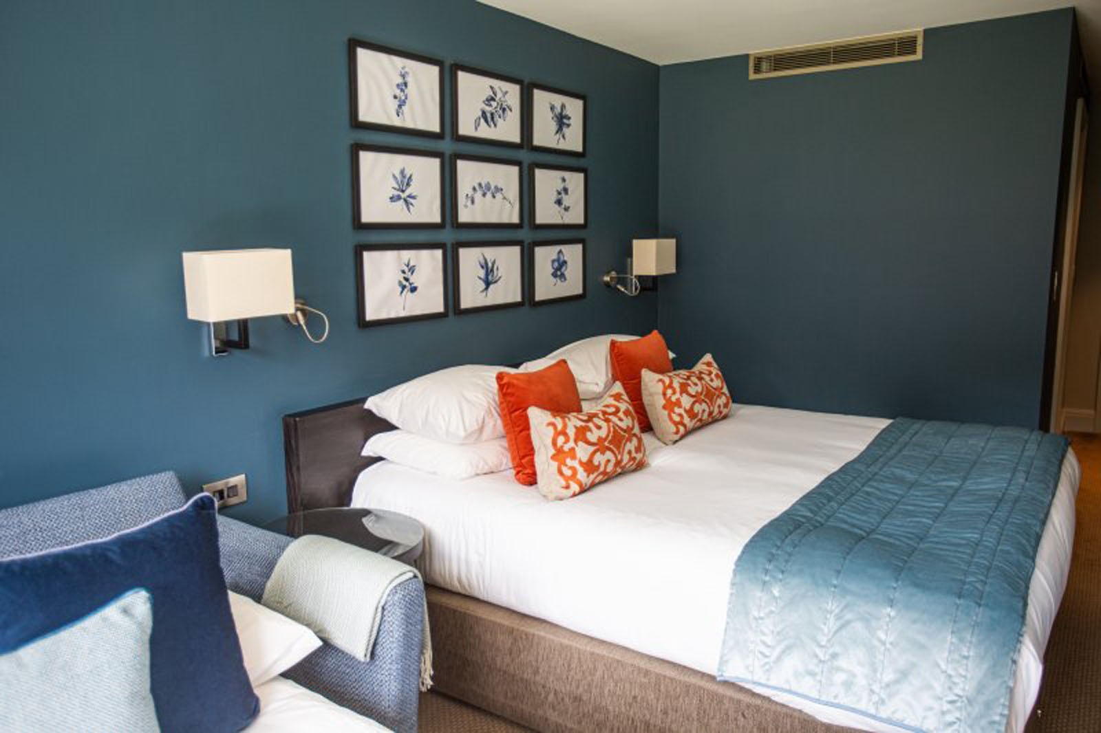 Offering space to spread out and relax. These smart and contemporary rooms have a large king sized double bed with a thick mattress topper, crisp Egyptian cotton linen and duvet, suitable for the largest and longest guest. Our beds can be unzipped to form two single beds to create a spacious twin room (Please advise at the time of booking) From the comfort of a seating area, enjoy views of the grounds and gardens with occasional glimpses of our local wildlife. The room comes complete with complimentary tea & coffee making facilities to keep you hydrated. The bathrooms offer underfloor heating, bathtub with shower over and luxury toiletries. A large flat screen smart television and complimentary WI-FI enables you to stay connected during your stay.