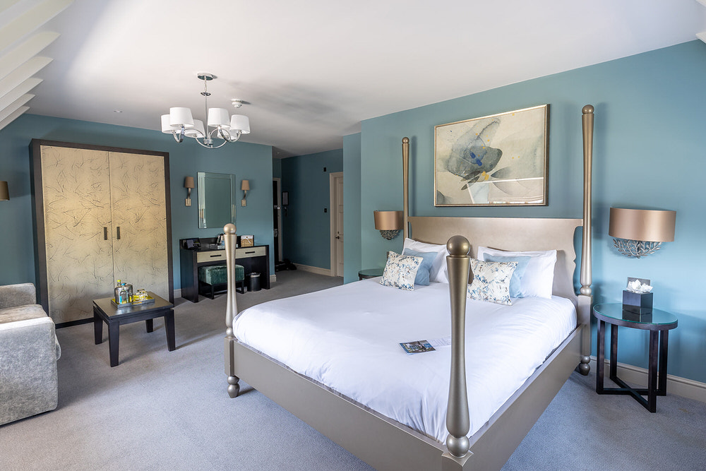 Open the door and enter a world of luxury and comfort. Our cosy, modern and stylish feature Suite is perfect for an intimate, romantic escape. Designed to the highest standard, sink into the super king sized double bed adorned with throws, cushions and crisp Egyptian linen. Immerse yourself in the history of the Manor House, with original period features… interior design heaven!